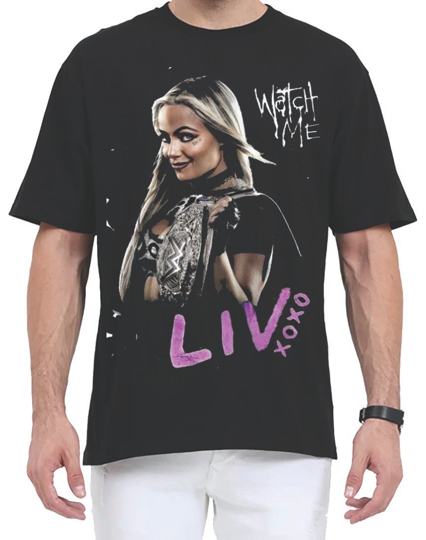 alt fashion, statement outfit, casual wear, premium print, pop culture apparel, trendy oversized tee, wrestler t-shirt, stylish street look, fan merchandise, unique design, wrestling culture, bold attitude, sporty vibe, Liv Morgan, WWE Superstar, Liv Morgan merch, Rebel theme, Harley vibe, badass style, streetwear fashion, oversized fit, soft cotton,