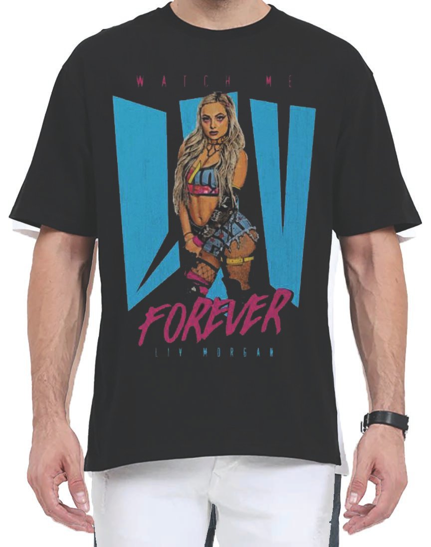 wrestler t-shirt, stylish street look, fan merchandise, unique design, wrestling culture, bold attitude, sporty vibe, Liv Morgan, WWE Superstar, Liv Morgan merch, Rebel theme, Harley vibe, badass style, streetwear fashion, oversized fit, soft cotton,