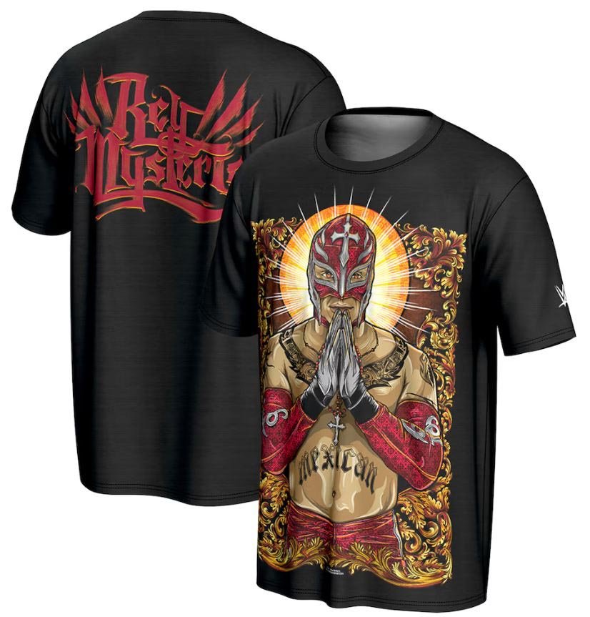 high-energy vibes, avant-garde style, expressive wear, Rey Mysterio t-shirt,