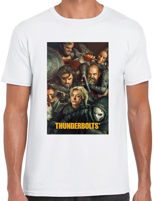 David Harbour, Sebastian Stan, Wendell Pierce,Thunderbolts*, Thunderbolts t-shirt, merch, Action, Jake Schreier, American superhero film, Florence Pugh, Lewis Pullman,